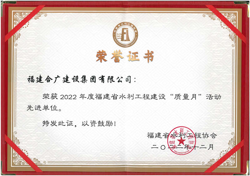 2022福建省水利工程建設(shè)質(zhì)量月活動先進(jìn)單位